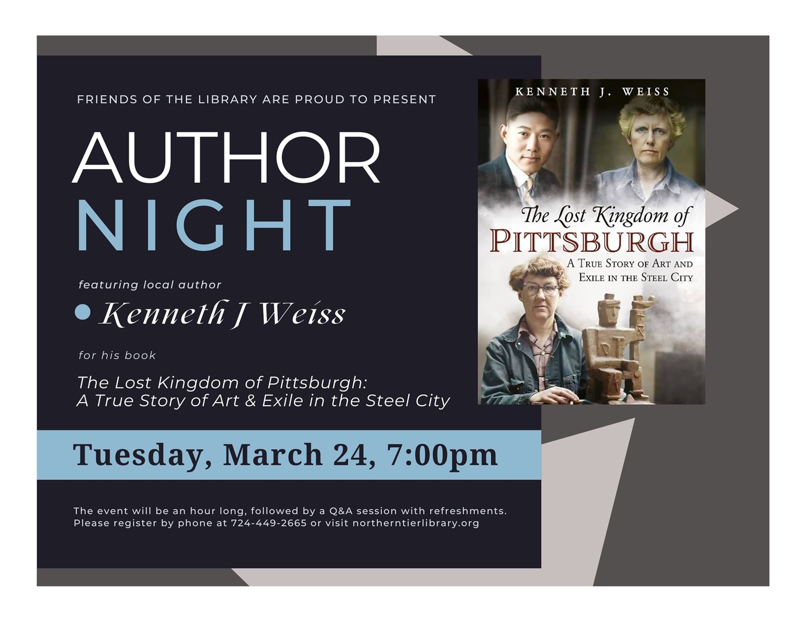traditional library setting—it has a rotating collection of children’s books, bestselling adult titles, and a “library of things” to take you adventuring into Pine Community Park. Don’t see the book that you’d like to read? You can utilize the online catalog and have the books delivered. Our programming at the PCC includes storytimes, makerspace activities, and various groups meeting up to play games, knit together, discuss books, plus some.
